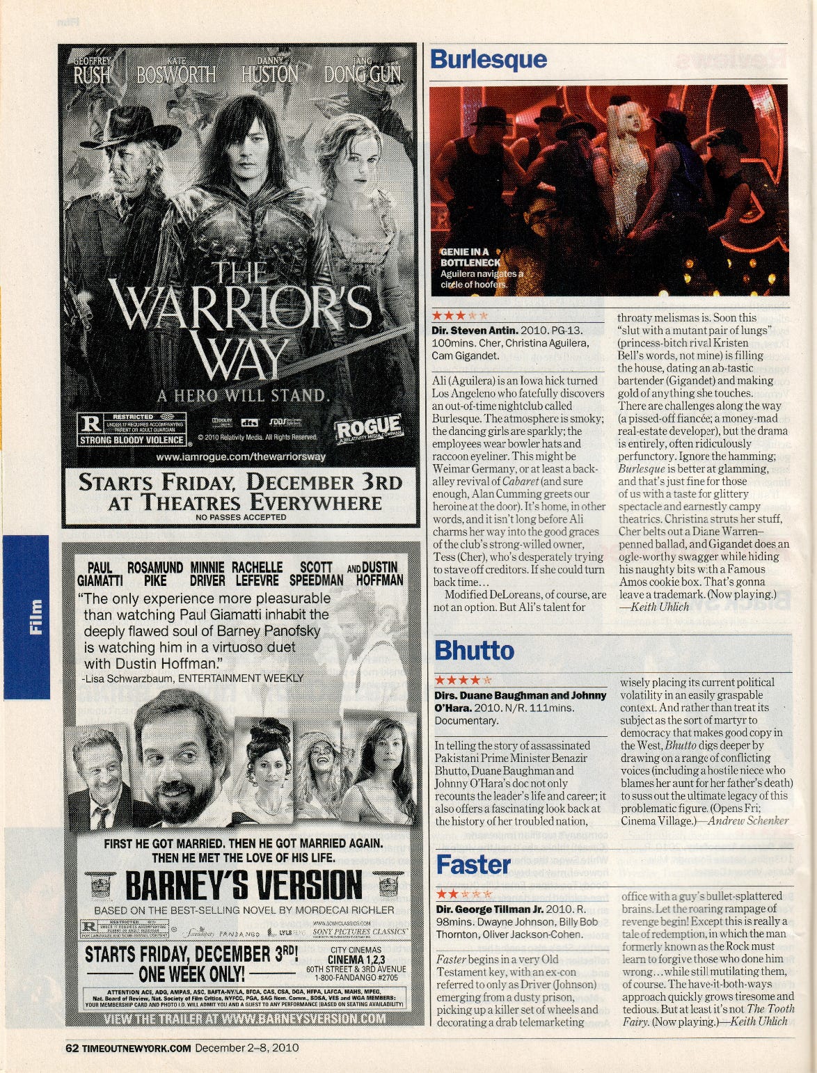 Faster begins in a very Old Testament key, with an ex-con referred to only as Driver (Johnson) emerging from a dusty prison, picking up a killer set of wheels and decorating a drab telemarketing office with a guy’s bullet-splattered brains. Let the roaring rampage of revenge begin! Except this is really a tale of redemption, in which the man formerly known as the Rock must learn to forgive those who done him wrong…while still mutilating them, of course. The have-it-both-ways approach quickly grows tiresome and tedious. But at least it’s not The Tooth Fairy.—Keith Uhlich
