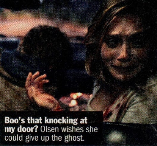 Those Olsens and their houses, huh? On their long-running ABC sitcom, Full House, Mary-Kate and Ashley’s biggest horror was dealing with impersonation-prone cohabitant Dave Coulier (that exasperating Rich Little manqué and Alanis Morissette muse). Whereas younger sis Elizabeth has an actual bloodthirsty specter chasing after her in Chris Kentis and Laura Lau’s technically accomplished, narratively preposterous remake of the Uruguayan scare film La Casa Muda (2010). First Martha Marcy May Marlene’s murderous cult, and now this? Give the girl a break!